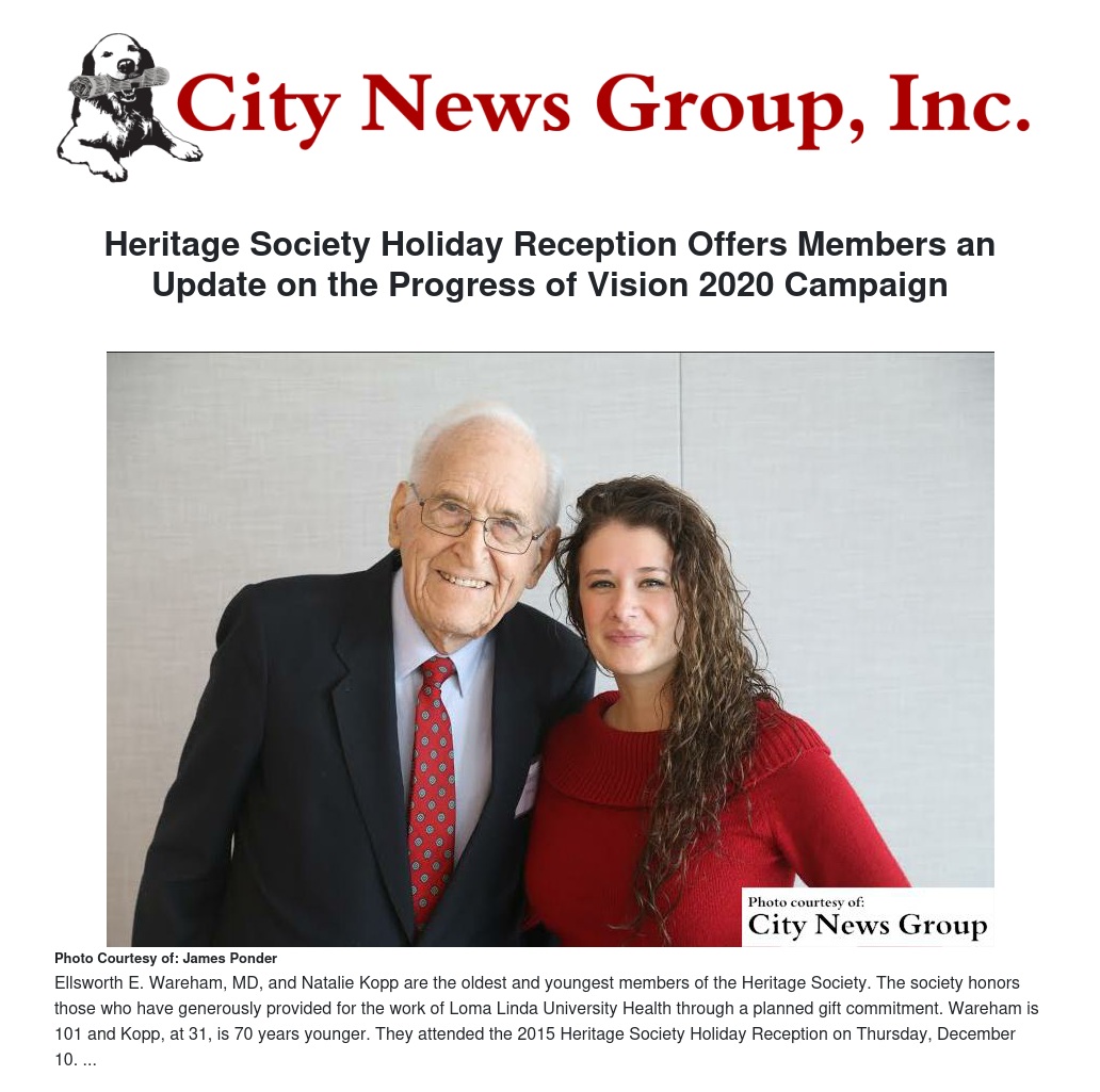 LOMA LINDA >> The 2015 Heritage Society Holiday Reception, held Thursday, December 10 in the Chen Fong Conference Center on the campus of Loma Linda University Health, afforded administrators and philanthropy staff an opportunity to thank society members for their continuing dedication and support.