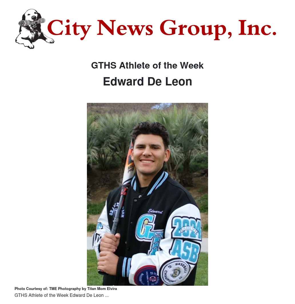 GTHS Athlete of the Week by Titan MomElvira - City News Group, Inc.