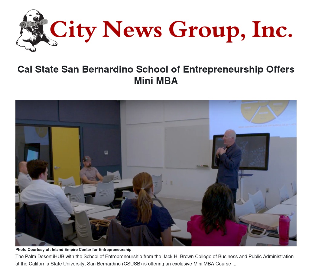 Cal State San Bernardino School of Entrepreneurship Offers Mini MBA by Stacey Allis - City News Group, Inc.