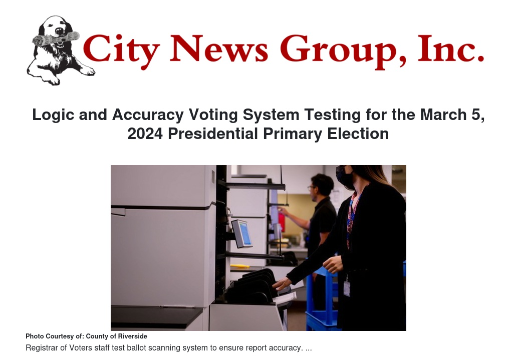The Riverside County Registrar of Voters conducted a logic and accuracy testing for the voting system in preparation for the upcoming March 5, 2024, Presidential Primary Election.