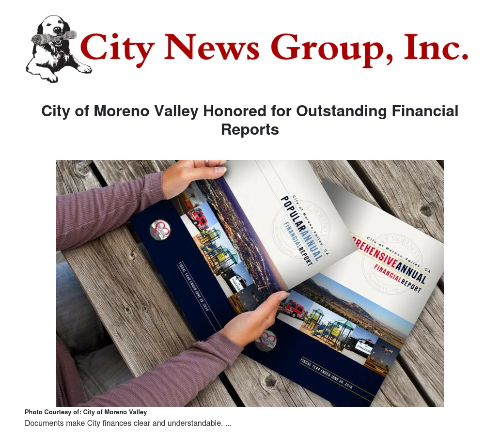 City of Moreno Valley Honored for Outstanding Financial Reports by City of Moreno Valley - City News Group, Inc.