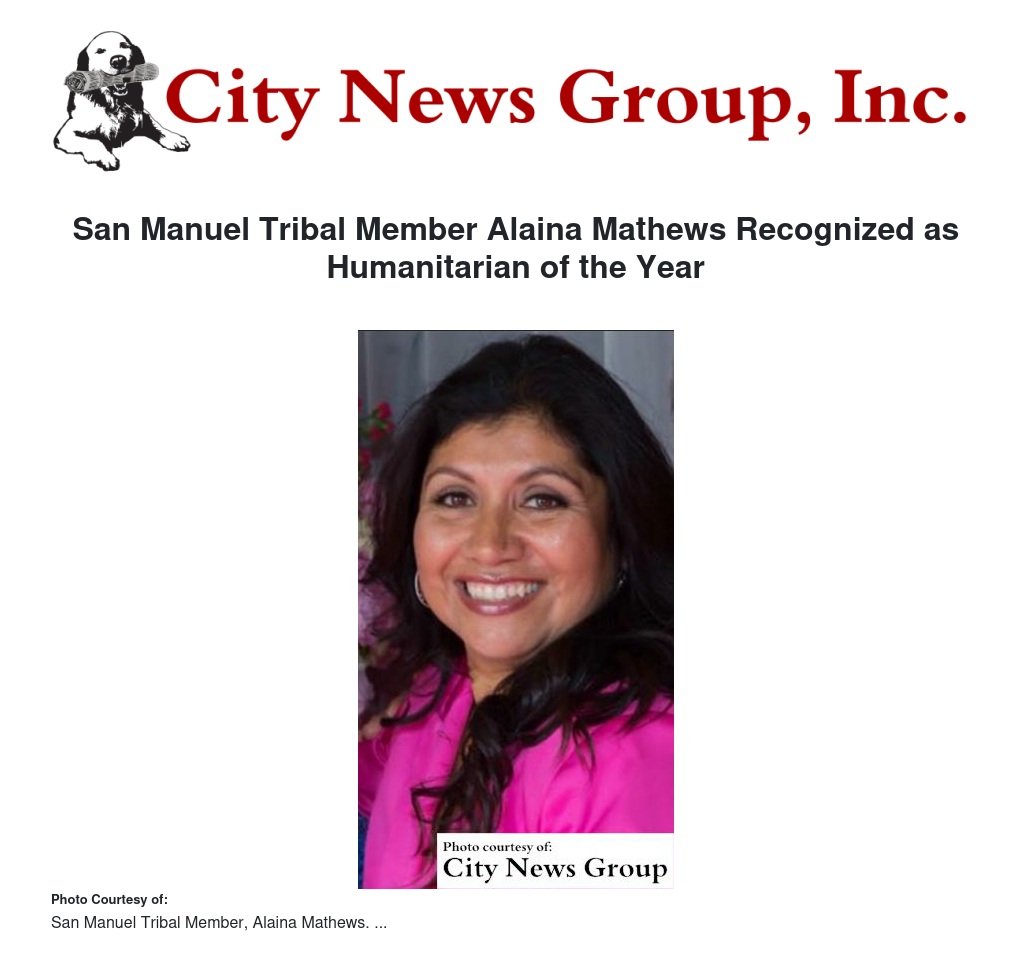 San Manuel Tribal Member Alaina Mathews Recognized as Humanitarian of the Year