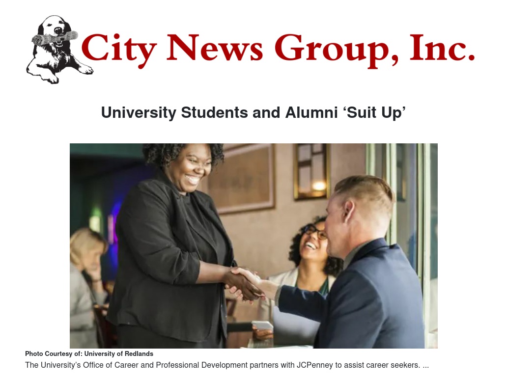 The Office of Career and Professional Development (OCPD) at the University of Redlands is partnering with JCPenney, and the local community, to help “Suit Up” students and alumni with professional attire this Sunday at the JCPenney Redlands Town Center location.