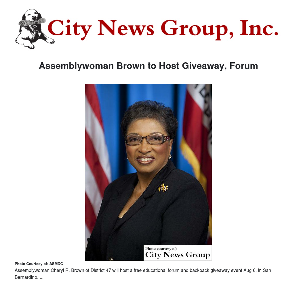 Assemblywoman Brown to Host Giveaway, Forum