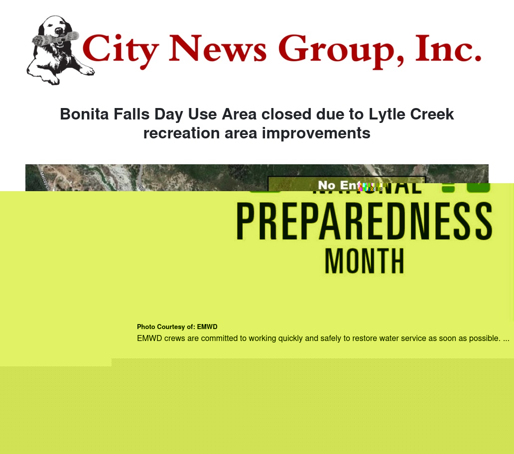 September is National Preparedness Month so Eastern Municipal Water District (EMWD) wants to take the opportunity to remind its customers of the importance of being prepared in the event of a major emergency – such as an earthquake – that could result in an extended interruption of water service.