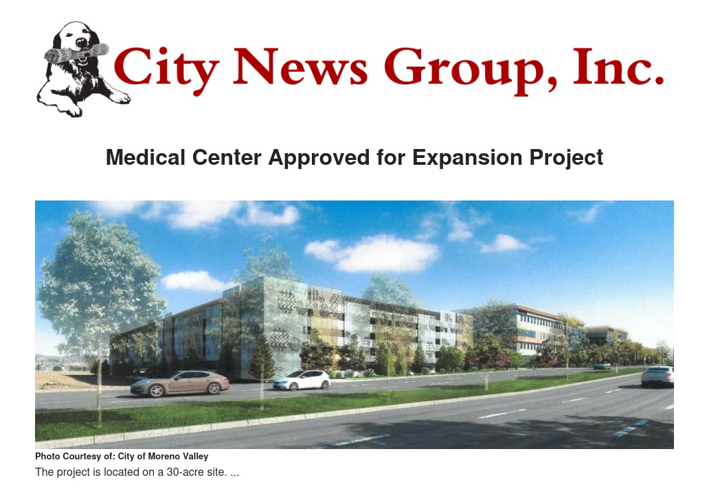 The health care footprint in Moreno Valley is going to grow with the City's recent approval of Kaiser Medical Center's 20-year expansion plan. Kaiser, located on a 30-acre site at 27200 Iris Ave., will add 1,125,000 square feet of medical services space, including an expansion of its current 100-bed hospital to an eventual 460-bed facility.