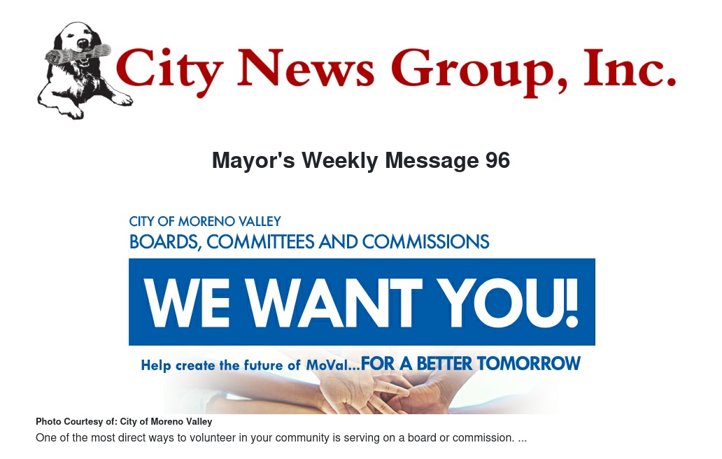 If you want to serve our community, there’s no better way to begin than by serving on a Board or Commission. Visit the City website at www.moval.org, and under the “City Hall” tab you’ll find plenty of information about serving and an application you can complete right there!