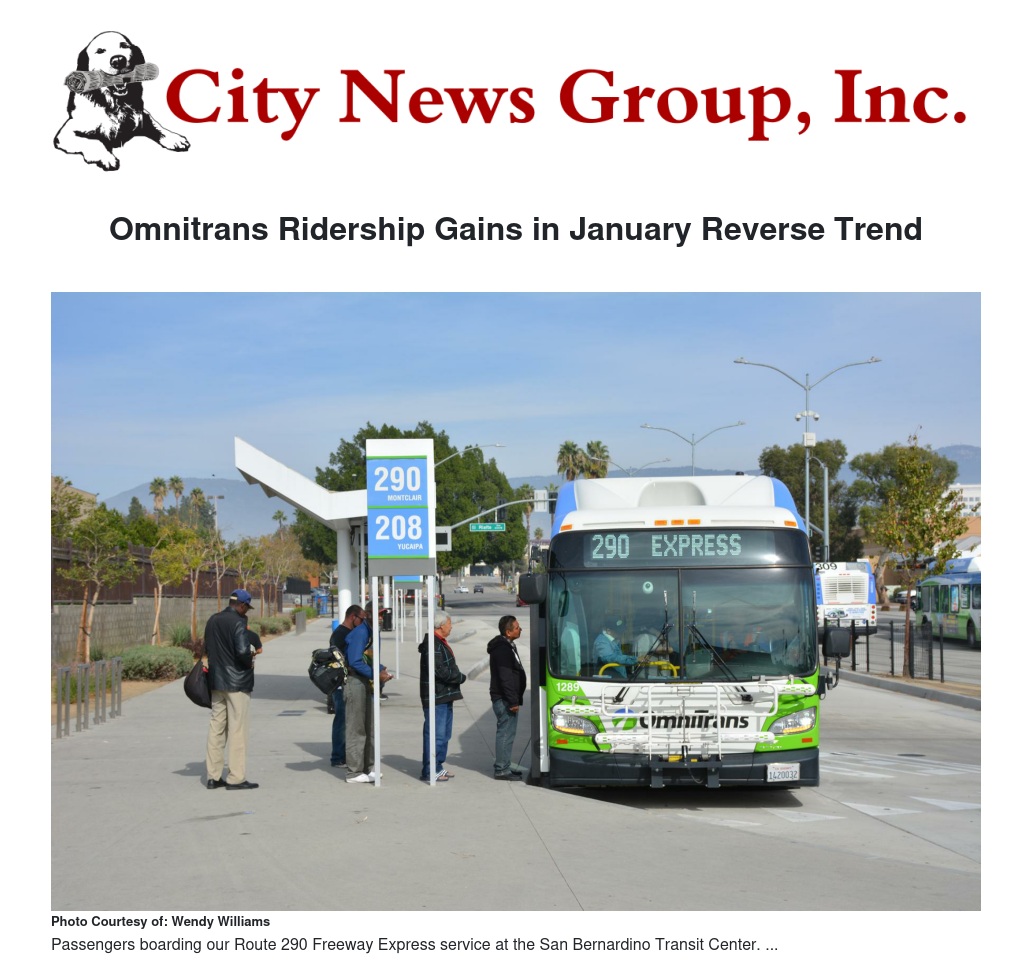 Omnitrans Ridership Gains in January Reverse Trend by Wendy Williams - City News Group, Inc.