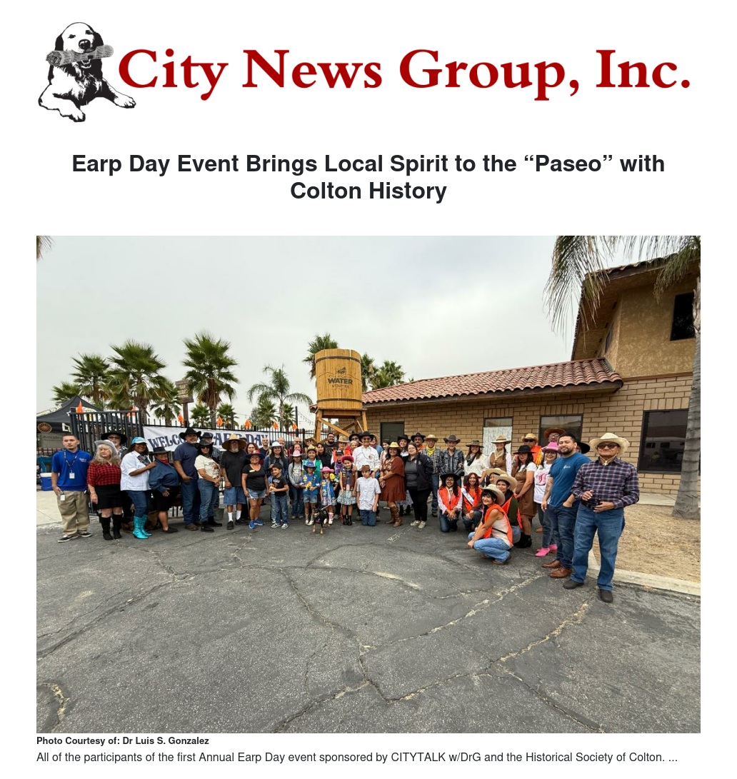 The entire event was focused on bringing the community together to celebrate our historical roots. When the City of Colton was established in 1887 the trains were creating a community of bustling life and townsfolk living in the area at the time, were served and protected by Virgil Earp, one of the famous (and notorious) members of the wild-west Earp family. This event was a very good way of bringing back to life our Colton history, which is of special interest to DrG and his CITYTALK w/DrG programs, now incorporated as a 501(c)(3) non-profit organization.