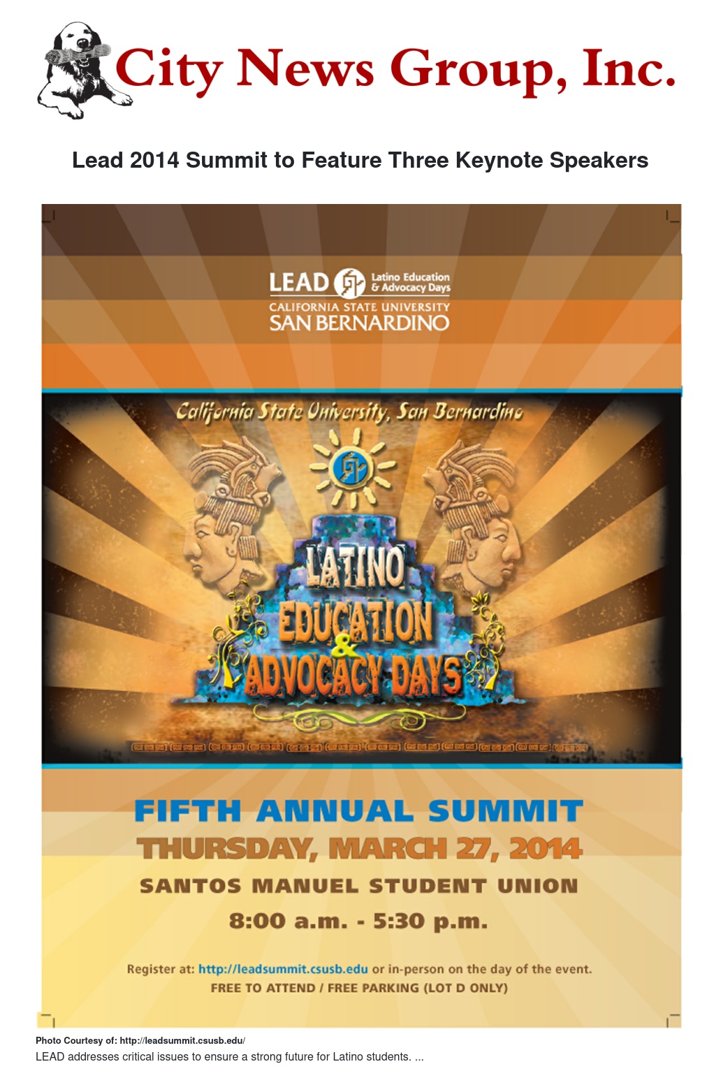 The free, day-long conference will be held in the university’s Santos Manuel Student Union Events Center and will be hosted again by CSUSB’s College of Education. Online registration is available at the LEAD website . The summit will be webcast simultaneously to viewing locations nationally and internationally.