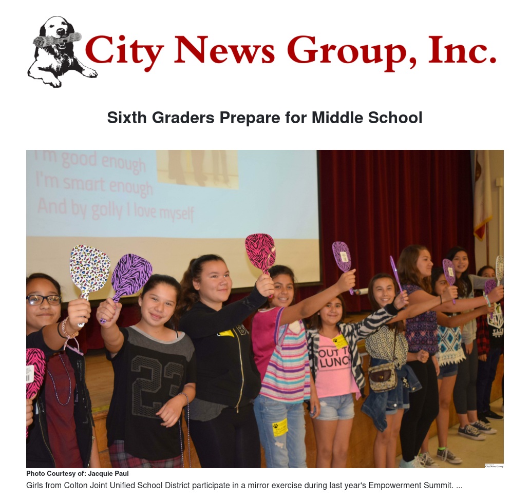 COLTON>> Helping sixth-grade girls and boys to build the skills they need to successfully transition into middle school is the aim of a series of “Empowerment Summits” which will take place at Colton Joint Unified School District middle schools in the next few weeks.