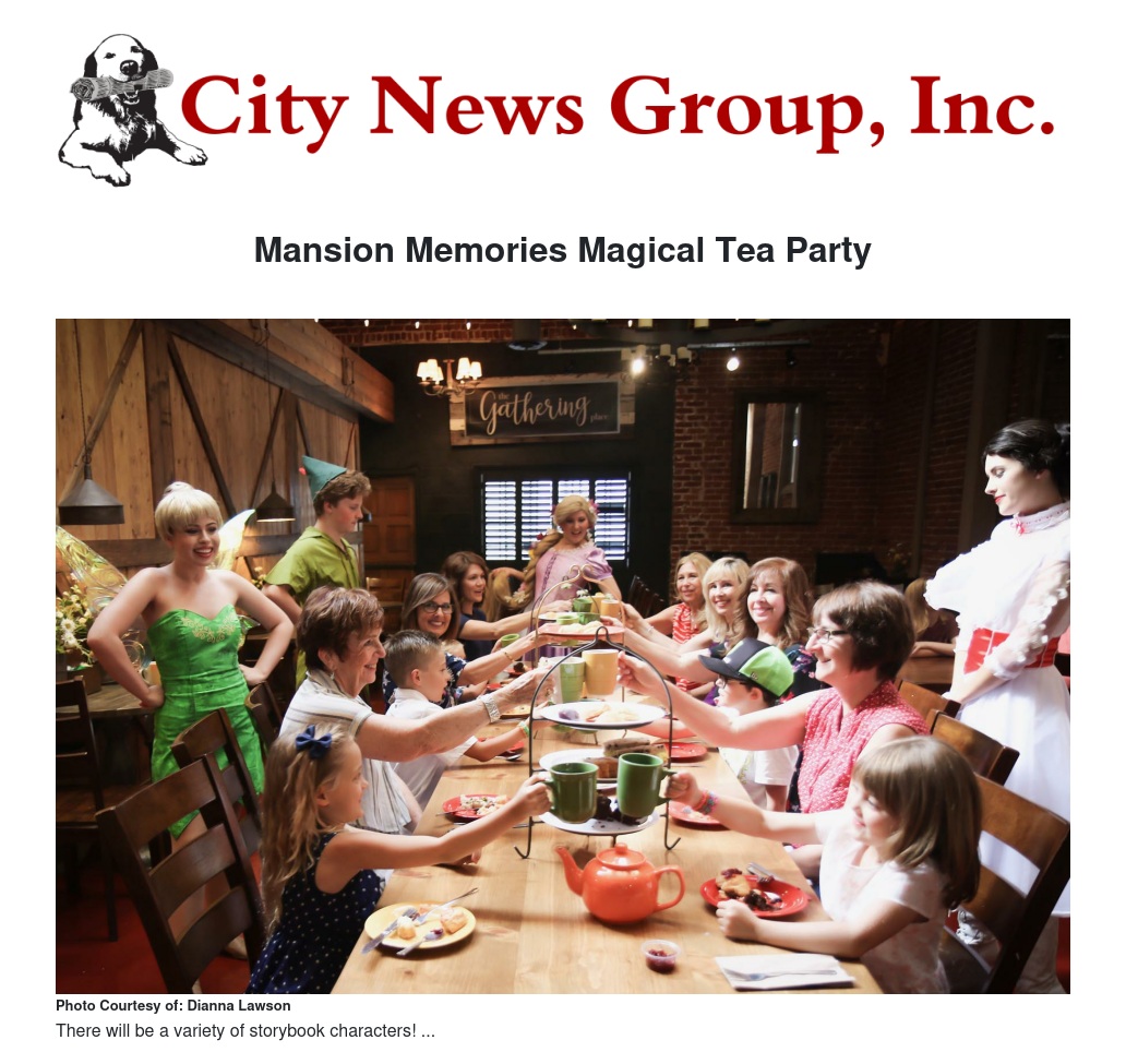 Come make forever memories where guest will enjoy Martha's well known Rustic Tea with a scrumptious assortment of treats! Invite your girlfriends, sisters, aunts, mom, grandmother as well as your special little ones and be swept away in the Magic. Mansion Memories fun storybook characters will be there too and they are eager to serve you!