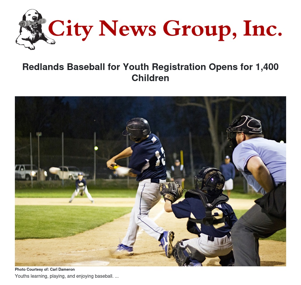 Redlands Baseball for Youth Registration Opens for 1,400 Children