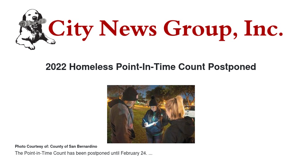 2022 Homeless Point-In-Time Count Postponed by County of San Bernardino - City News Group, Inc.
