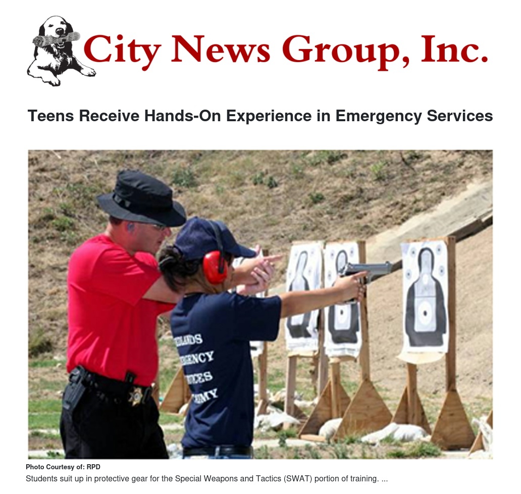 Each year, nearly two dozen local teens with an interest in a public safety career attend the annual Redlands Emergency Services Academy. The participants share temporary quarters for one week on the campus of the University of Redlands, are exposed to hands-on training exercises in fire and police operations, and are introduced to state of the art simulators.