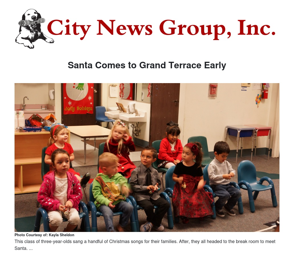 Santa came to town a little bit early this year to visit the children at Grand Terrace Child Care Center on Thursday night, Dec. 4.