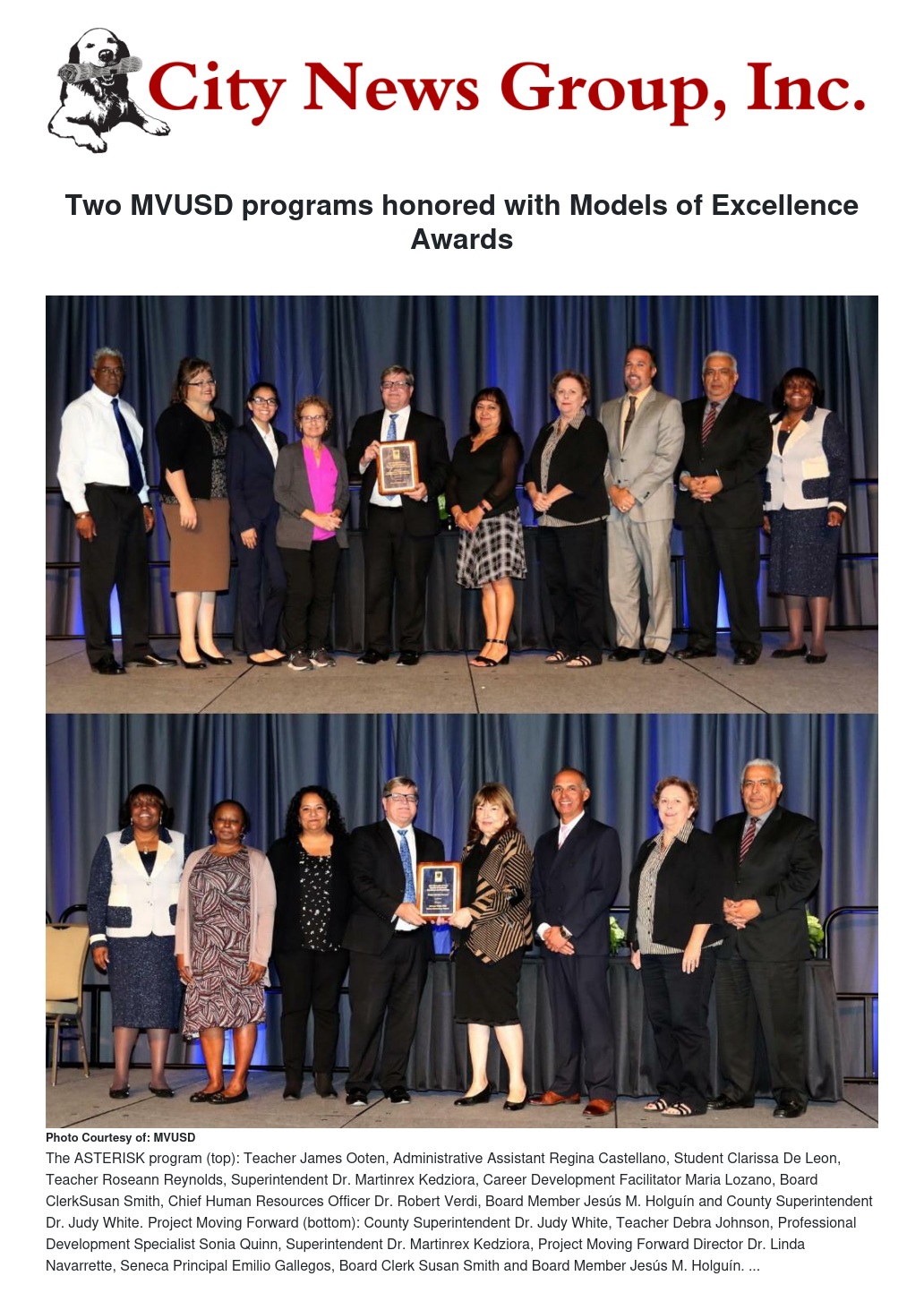 Two MVUSD programs honored with Models of Excellence Awards by Ariel Dun - City News Group, Inc.