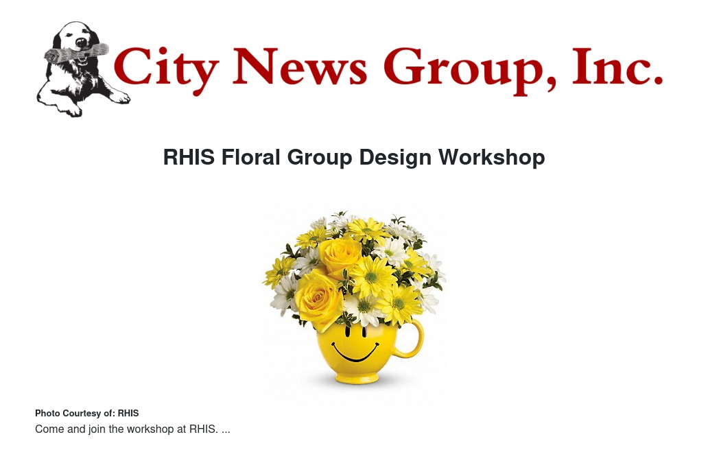 Redlands Horticultural and Improvement Society Floral Design Group will hold their Fall Floral Design Workshop at the Church of the Nazarene - Room 14, 1307 E. Citrus Ave., Redlands, Saturday Oct. 25 from 10 a.m. to noon. The program is free and adults and youth are invited to attend.