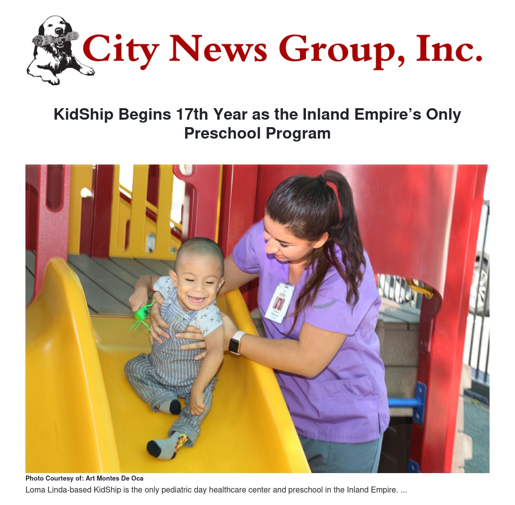KidShip holds dual licenses with the California Department of Public Health and Community Care Licensing. Its unique portfolio of programs includes preschool and child care; after-school programs for medically fragile school-age children; skilled nursing care; and therapy services for medically fragile children including occupational therapy, physical therapy, and speech. Find out more at kidship.org or on Facebook.