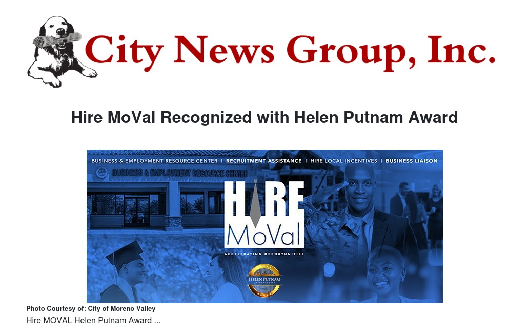 The City of Moreno Valley is proud to announce it has been awarded the prestigious Putnam Award for Excellence from the League of California Cities. This honor, in the category of City-Business Relations, recognizes the City’s groundbreaking Hire MoVal program and its commitment to fostering partnerships and workforce development.