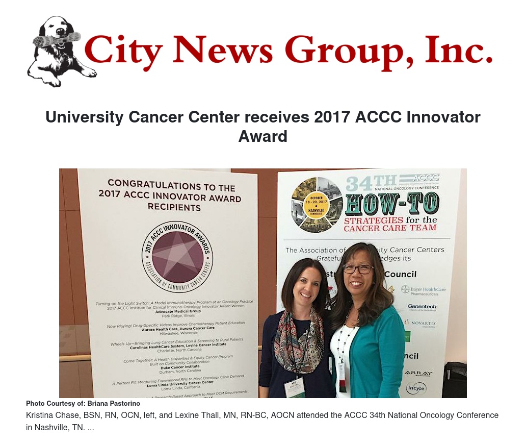 University Cancer Center receives 2017 ACCC Innovator Award by Briana Pastorino - City News Group, Inc.