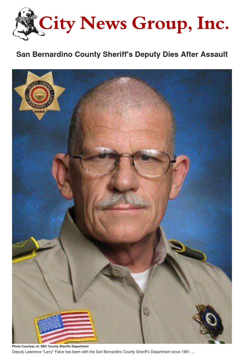 The San Bernardino County Sheriff's Department has been mourning the death of one of their own. On January 2, 2018, Deputy Lawrence “Larry” Falce succumbed to injuries he sustained from the violent attack that took place on Sunday, December 31, 2017.