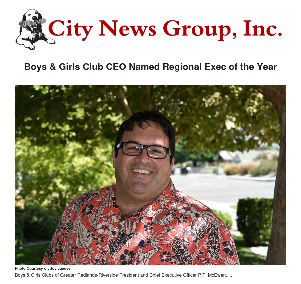 Boys & Girls Clubs of Greater Redlands-Riverside President and Chief Executive Officer P.T. McEwen was named executive of the year at Boys & Girls Clubs of America’s Pacific Region Leadership Awards.