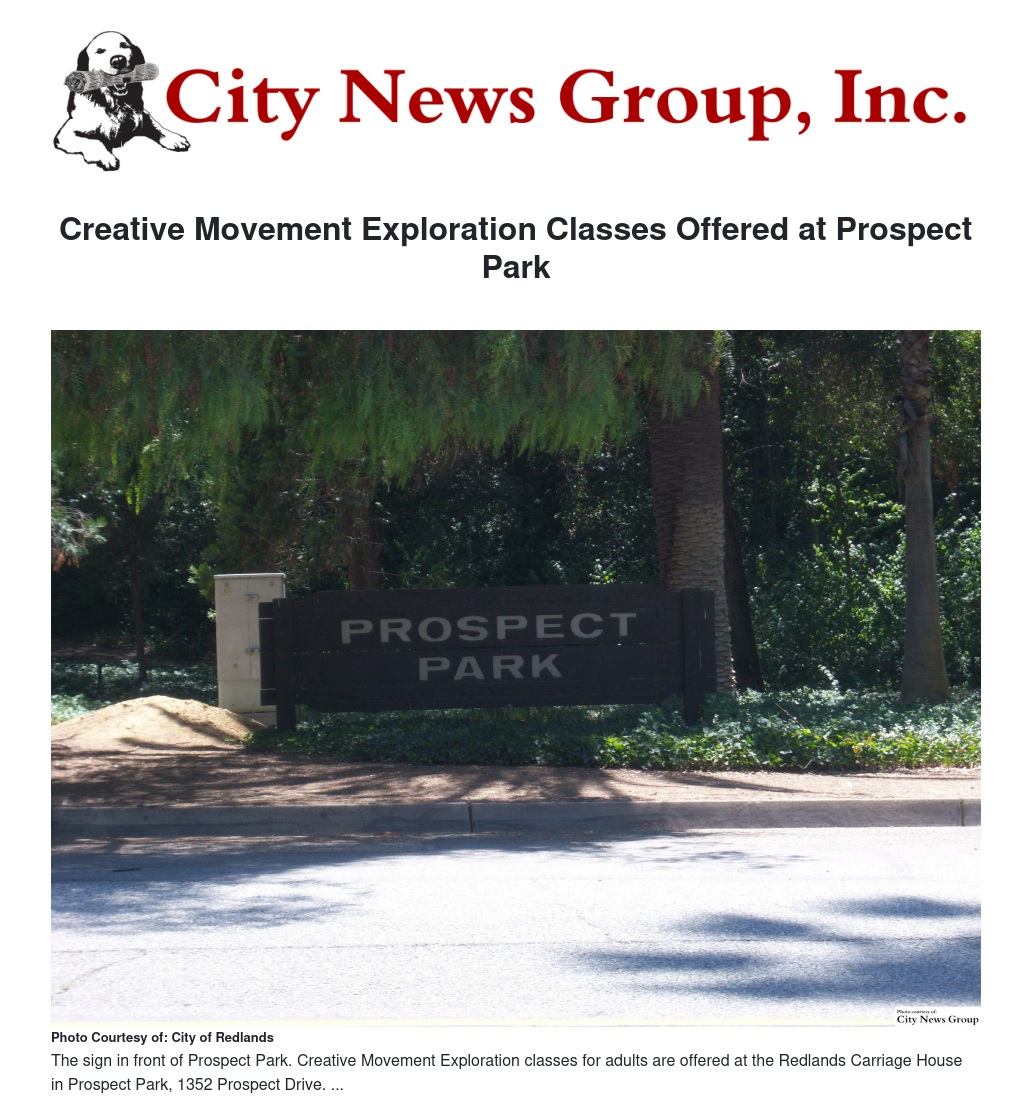 REDLANDS>> The City of Redlands Recreation Division recently announced a new class offering at Prospect Park, titled "Creative Movement Exploration Classes for Adults."