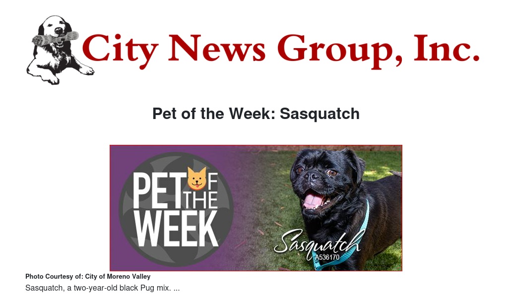 Pet of the Week: Sasquatch by Stella Pierce - City News Group, Inc.