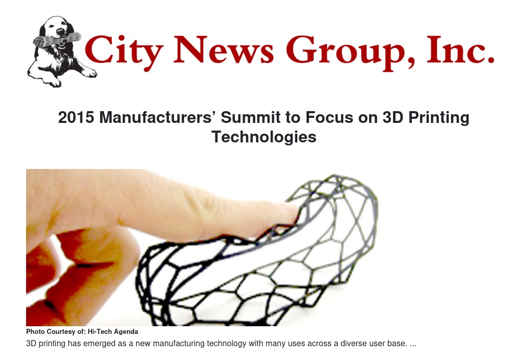 2015 Manufacturers’ Summit to Focus on 3D Printing Technologies