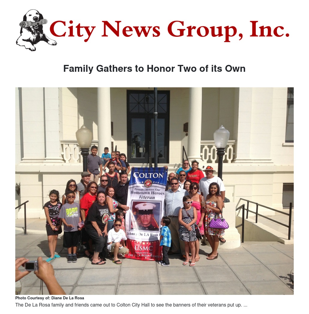 Recently, the City of Colton honored two of its veterans by decking lampposts with banners featuring their pictures. The banners were sponsored by the De La Rosa family of Colton to honor two of their veteran family members, Jesse Torres and Johnny De La Rosa.