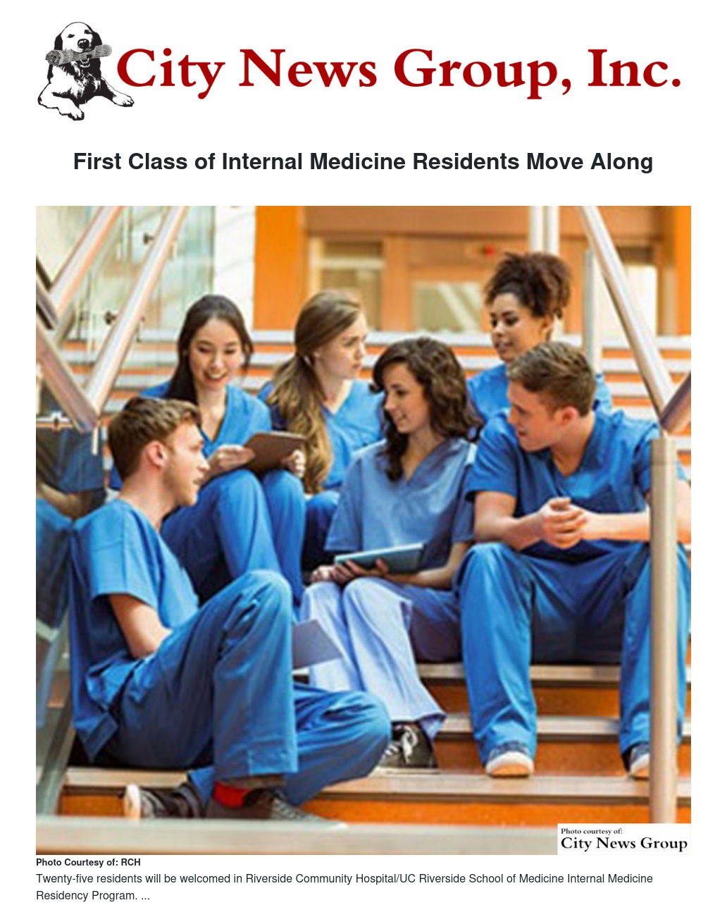 MORENO VALLEY >> Riverside Community Hospital will welcome 25 residents for the Riverside Community Hospital (RCH)/UC Riverside School of Medicine Internal Medicine Residency (IMR) Program.
