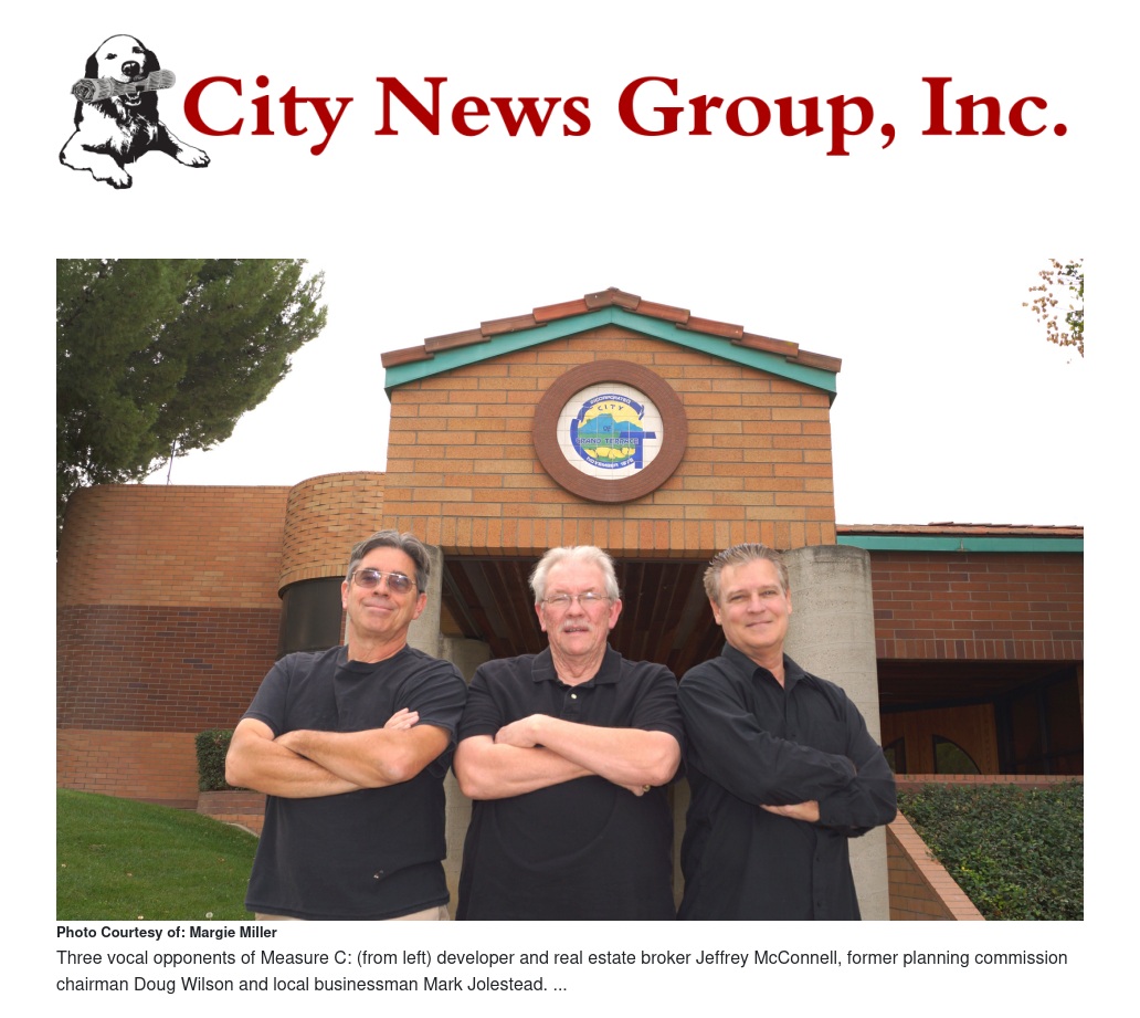 Jeffrey McConnell, a developer and real estate broker, said, "Change is never easy, but we must keep our eyes on the big picture. If the people of Grand Terrace stay vigilant with what is going on down at City Hall and with their elected officials, then we can remain fiscally conservative and not fall prey to the pension monster that is bringing cities across the nation to their knees. And maybe, just maybe, we can also make this city business-friendly once more."