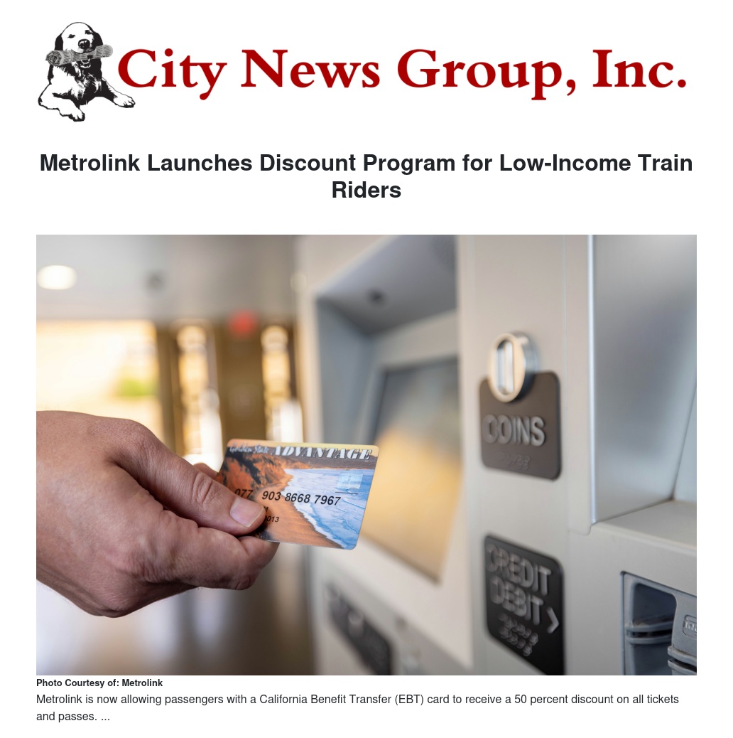 Metrolink Launches Discount Program for Low-Income Train Riders by Vivian Johnson - City News Group, Inc.