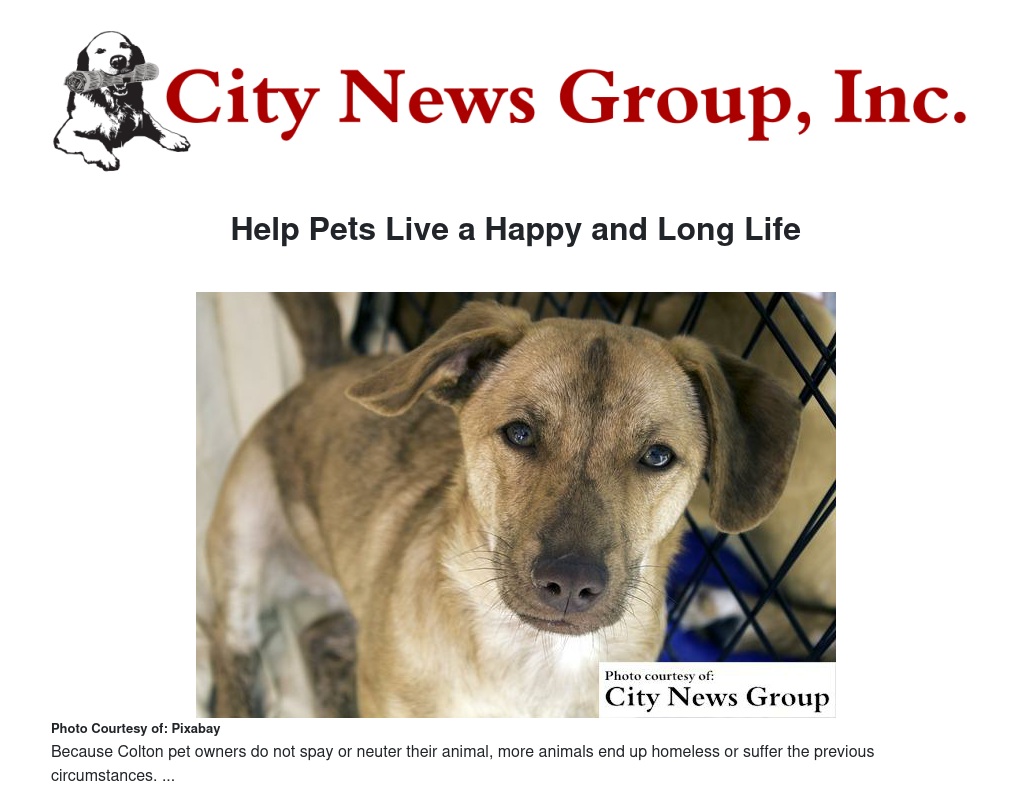 Puppies and kittens are no longer wanted, dumped, let loose, given away, or taken to a shelter, especially in the neighbouhoods of Colton.