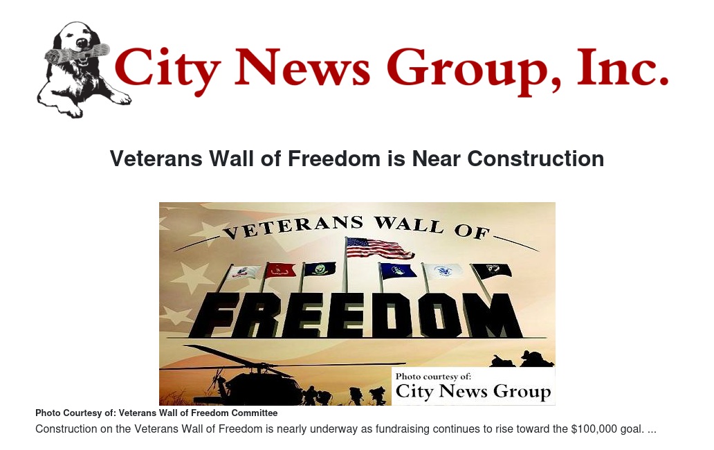 The idea of creating this Veterans Wall of Freedom Project has now grown from a simple seed to a beautiful flower that is about to bloom. Through the generosity of several individuals, groups, and corporate sponsors, the Freedom Wall construction costs are nearly funded, and the final fund raising efforts are being instituted now to make the Wall a reality this November for the Veterans Day celebration.