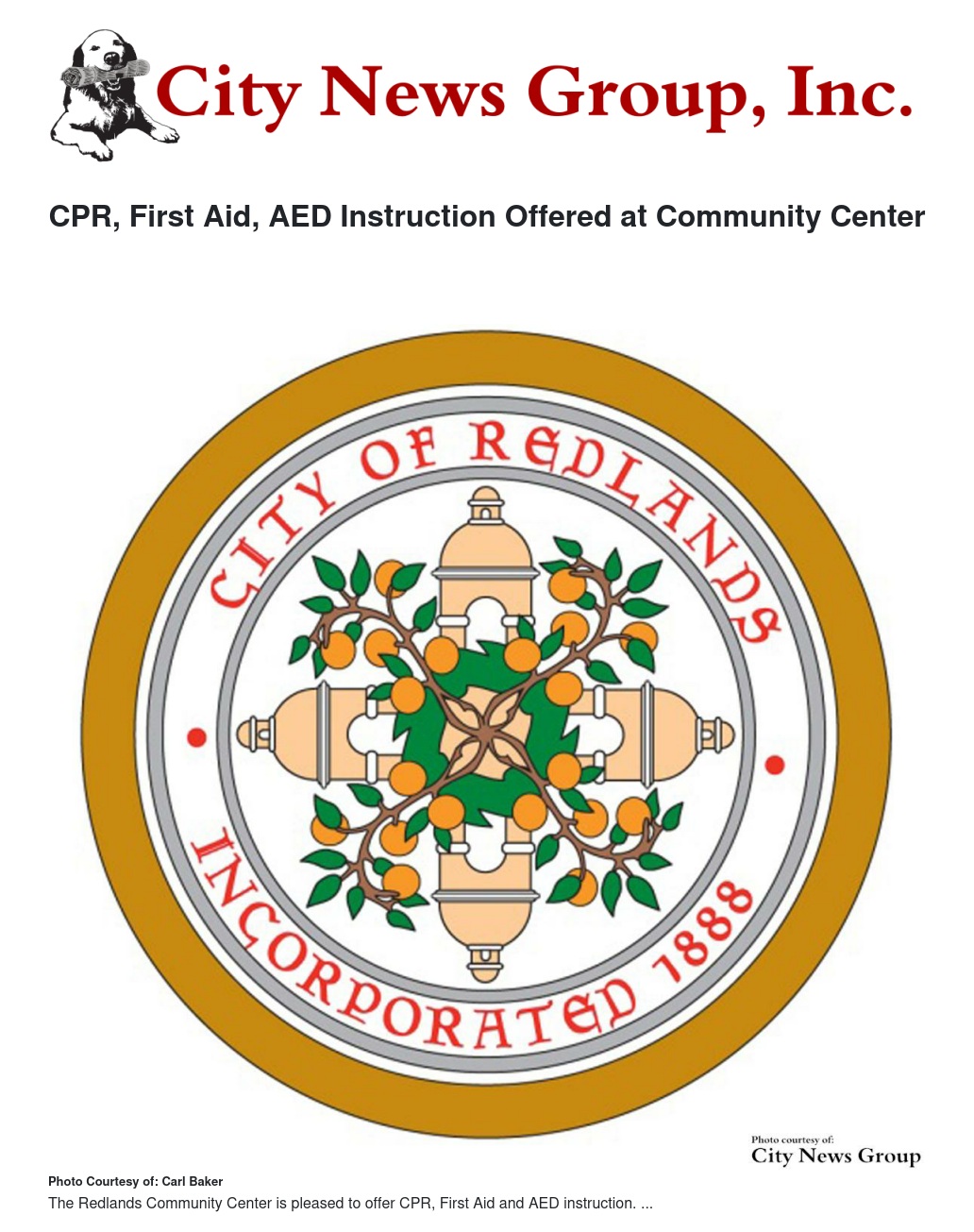 Students may select either the full 8-hour course from 9 a.m. to 5 p.m. for $75 or a 4-hour course for CPR and AED only, from 9 a.m. to 1 p.m. for $50. Online registration is available at www.cityofredlands.org/recreation/classes.