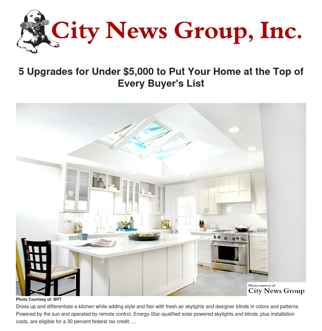 The low installation cost will leave you plenty of budget to enhance the skylight upgrade even further with energy efficiency-boosting solar-powered blinds. The skylight and blinds are operated by remote control and the blinds are available in designer colors and patterns to enhance your décor. The products, as well as installation costs, are eligible for a 30 percent federal tax credit to further reduce the cost of the improvement.