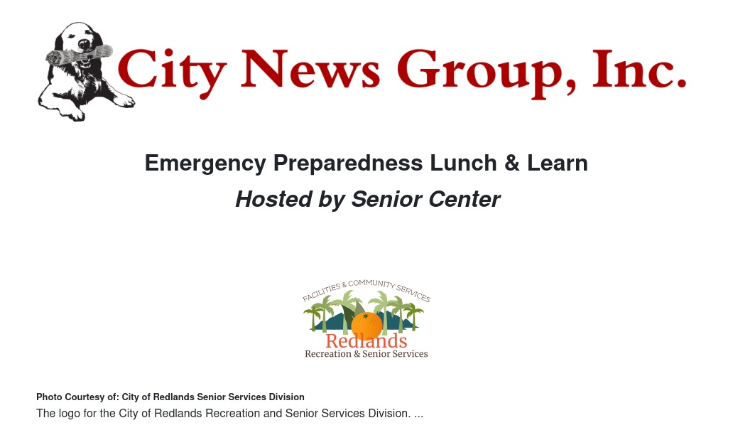 For more information on Lunch & Learn: Emergency Preparedness, or any programs offered at the Redlands Community Senior Center, please contact Recreation Division staff at (909) 798-7579 or by e-mail at RecreationStaff@cityofredlands.org.