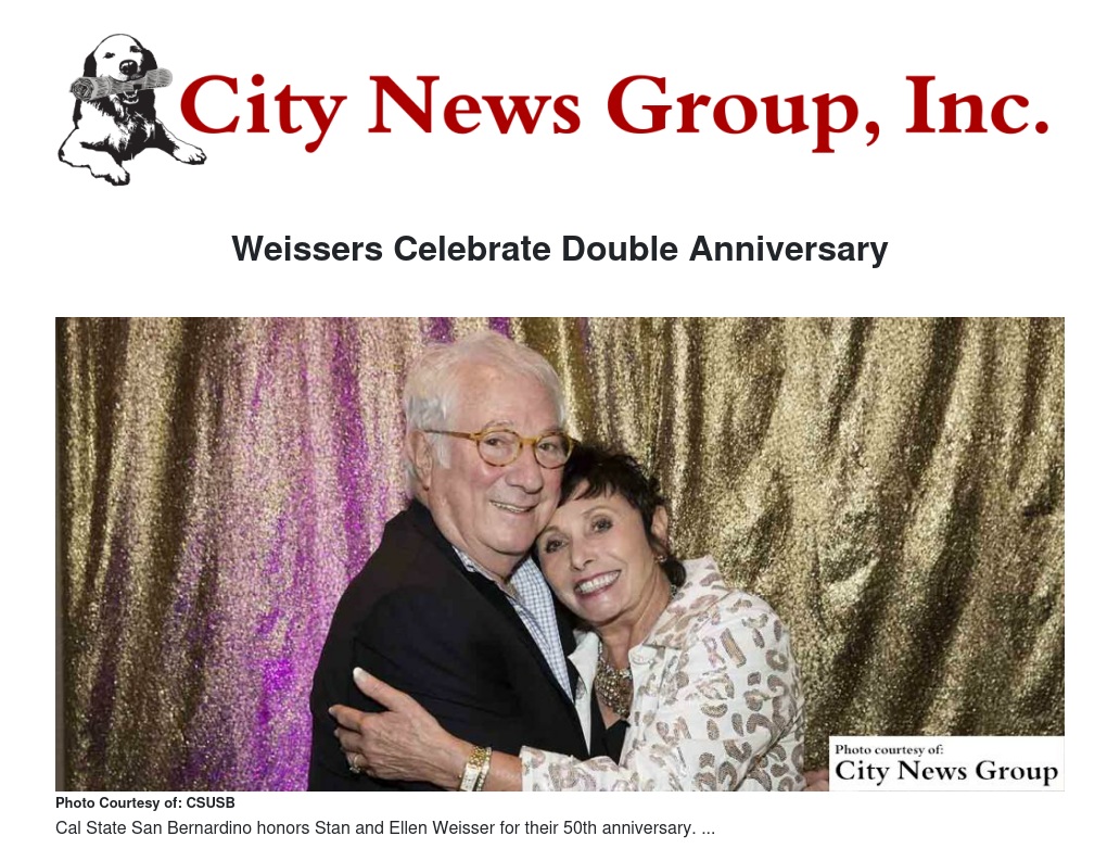 Gifts honoring the Weissers’ 50th wedding anniversary may be made to the CSUSB Philanthropic Foundation for the Ellen Weisser Endowed Theatre Showcase Fund. For more information, call Alicia Corral at (909) 537-3729.