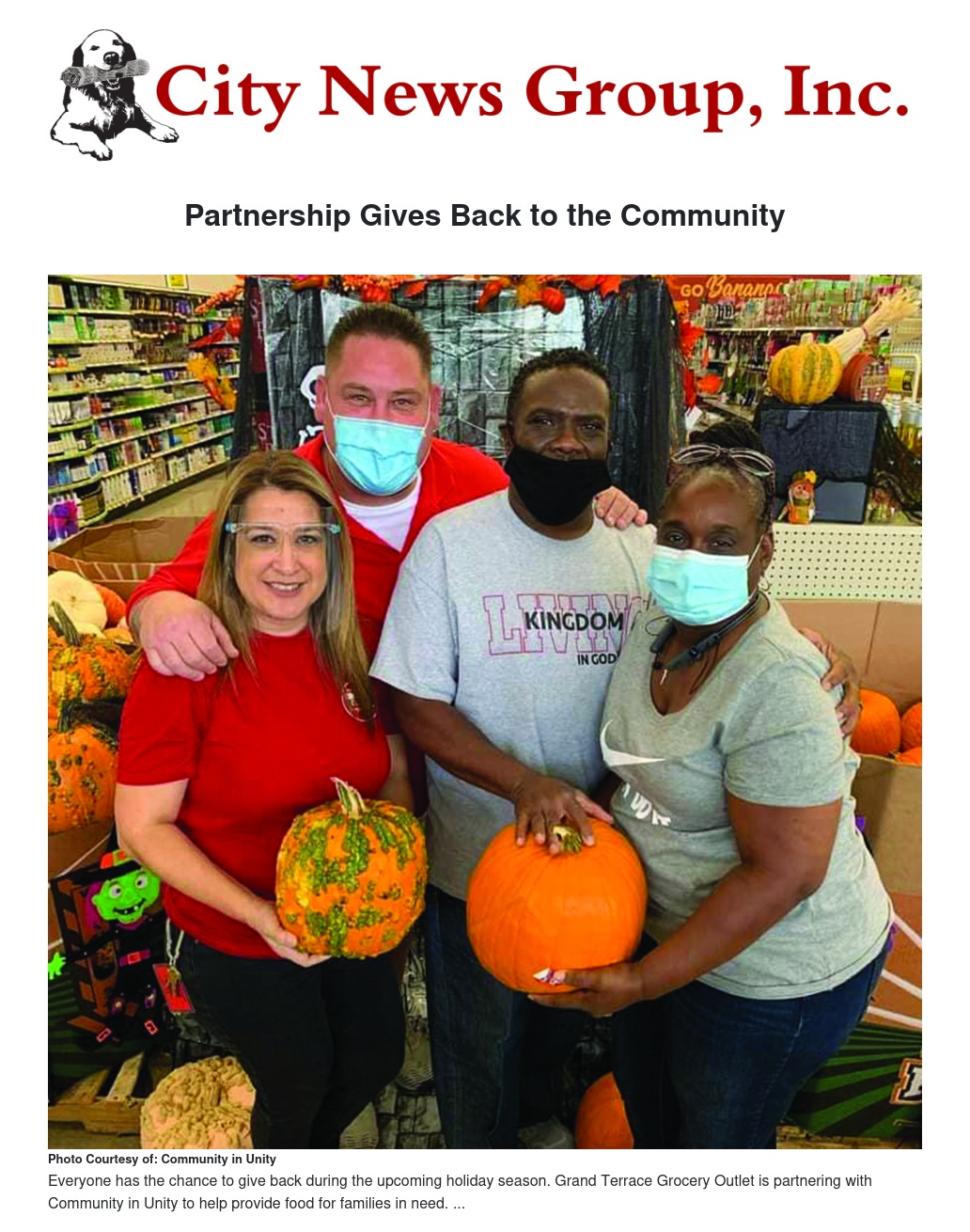 Both Grand Terrace Grocery Outlet and Community in Unity are welcoming everyone to participate, even if you can’t make a financial donation, a donation of time is greatly appreciated.
