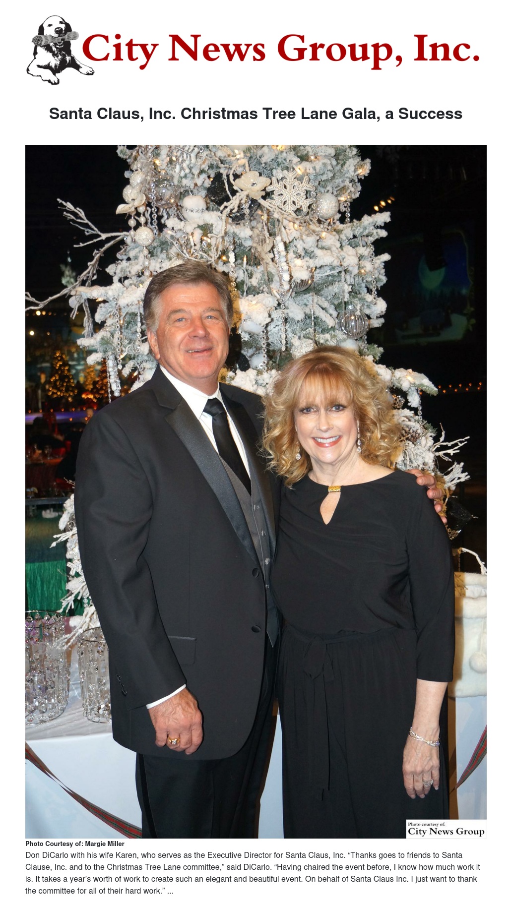 “Thanks goes to friends to Santa Clause, Inc. and to the Christmas Tree Lane committee,” said DiCarlo. “Having chaired the event before, I know how much work it is. It takes a year’s worth of work to create such an elegant and beautiful event. On behalf of Santa Claus Inc. I just want to thank the committee for all of their hard work.”