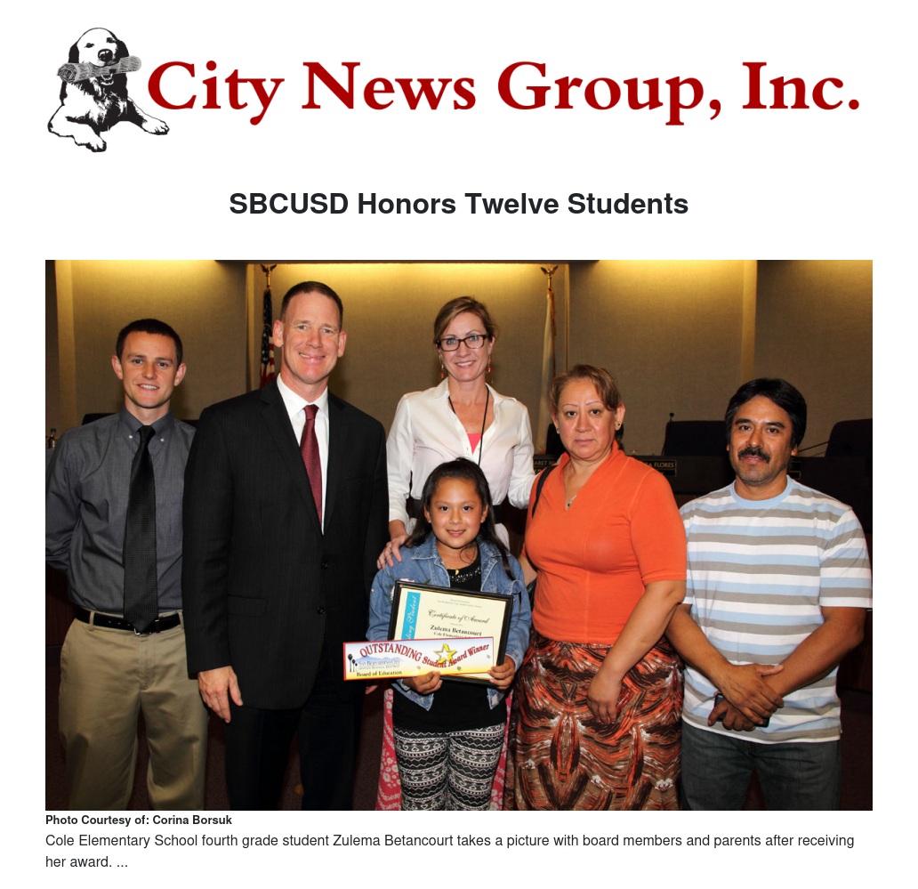 The San Bernardino City Unified School District Board of Education honored 12 students in the district at the board meeting on Tuesday, Oct. 21.