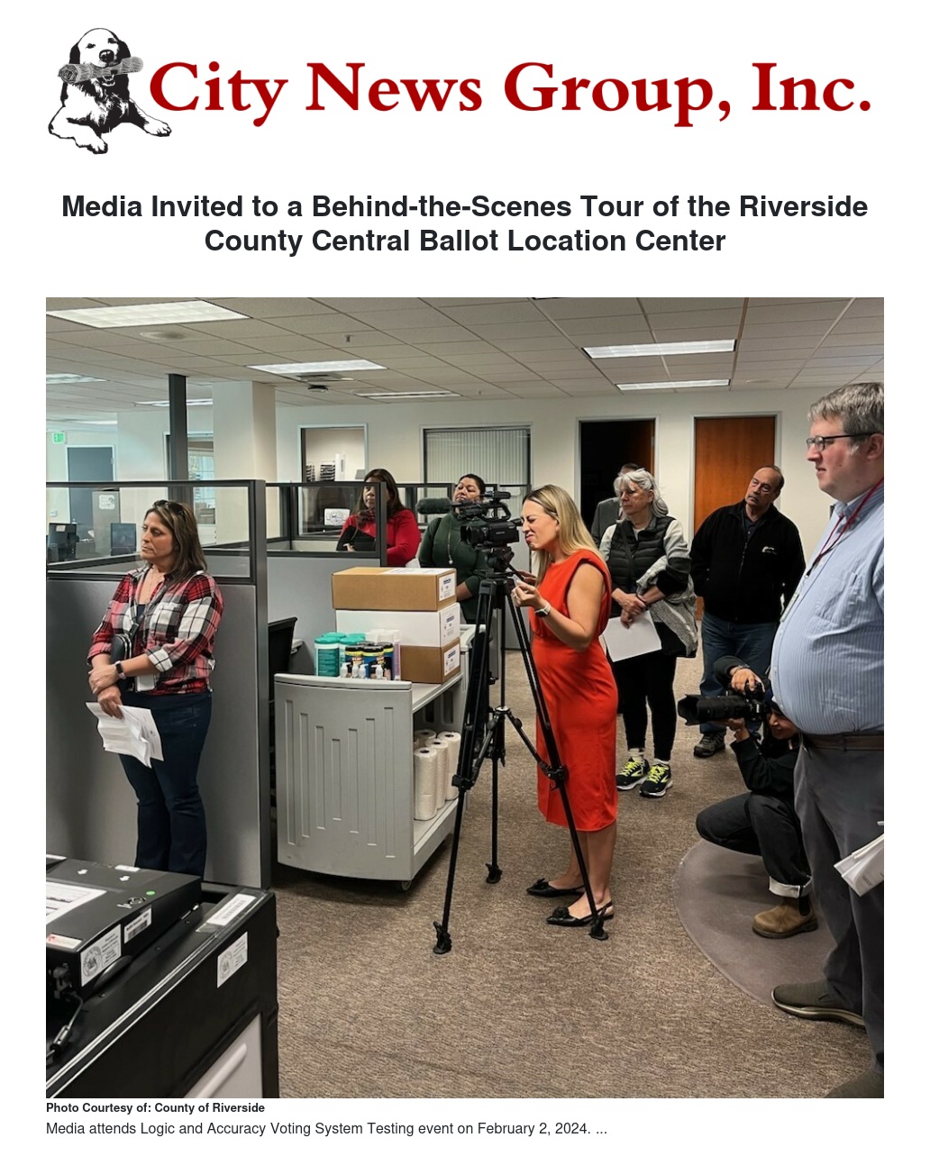 The Riverside County Registrar of Voters extends an invitation to the media for an on-site tour, offering a glimpse into the ballot processing and the stringent measures in place to safeguard votes from the moment they are cast. Additionally, media attendees will have the opportunity to explore the recently renovated ballot processing area, which has been thoughtfully designed to enhance the experience for election observers by providing a more immersive and informative environment.