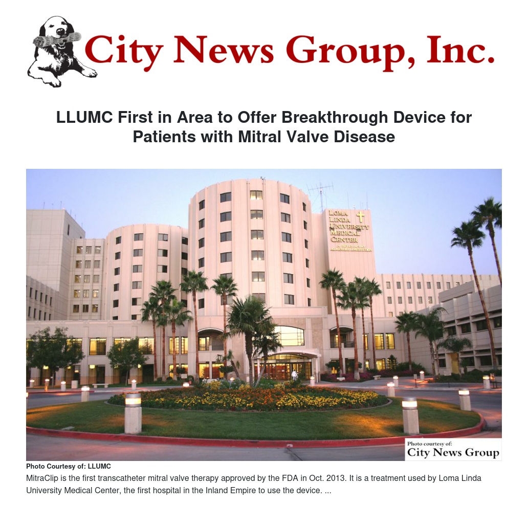 Loma Linda University Medical Center (LLUMC) became the first hospital in the Inland Empire and Orange County to offer percutaneous mitral valve repair using MitraClip® Device, manufactured by Abbott Vascular Laboratories.