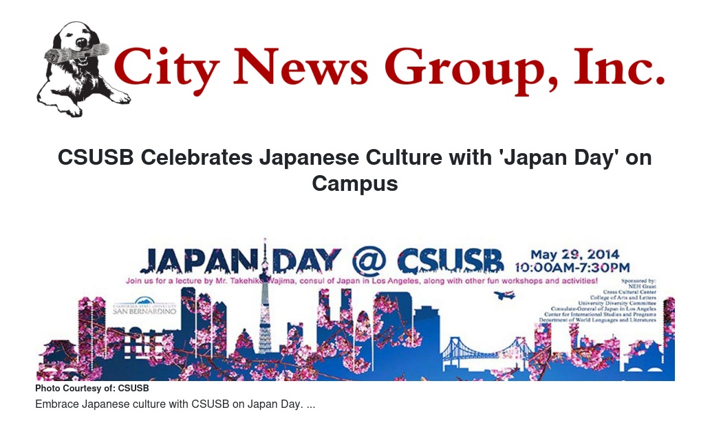 A day-long celebration of Japanese culture is slated for Thursday, May 29, at Cal State San Bernardino from 10 a.m.-7:30 p.m. at various locations on campus.