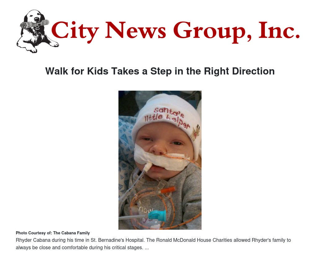 On November 30, 2010, the Cabana family welcomed their son Rhyder into the world. After only a couple of weeks, Rhyder began having seizures and was taken to St. Bernadine’s Hospital. After hospital staff took a look at little Rhyder and his condition, he was transferred to Loma Linda.