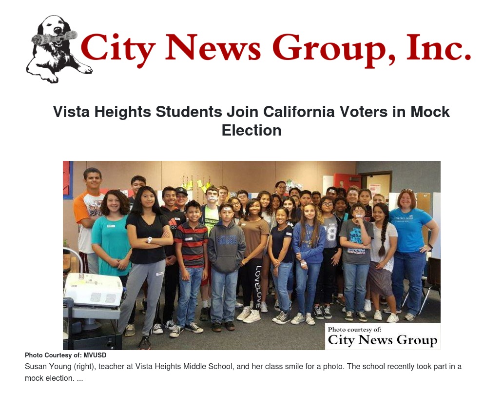 MORENO VALLEY>> While many are still talking about the presidential election, students in Susan Young’s class at Vista Heights Middle School probably understand that arcane system better than most eligible voters.