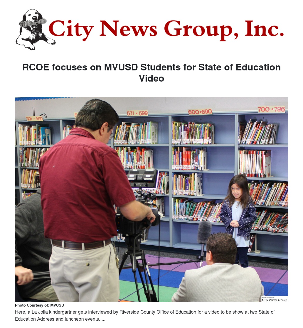 Students at La Jolla Elementary, Mountain View Middle and Vista del Lago High School were recently highlighted by a video crew from Riverside County Office of Education.