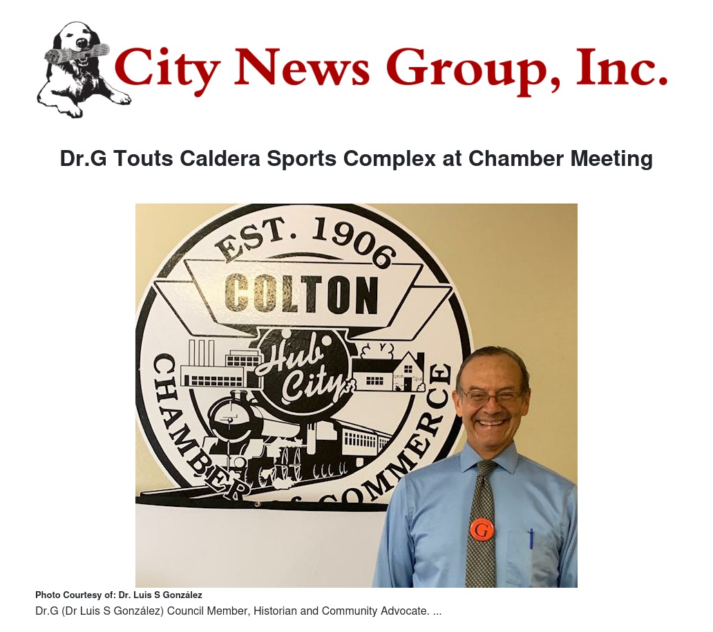 Dr.G Touts Caldera Sports Complex at Chamber Meeting by Dr Luis S González - City News Group, Inc.